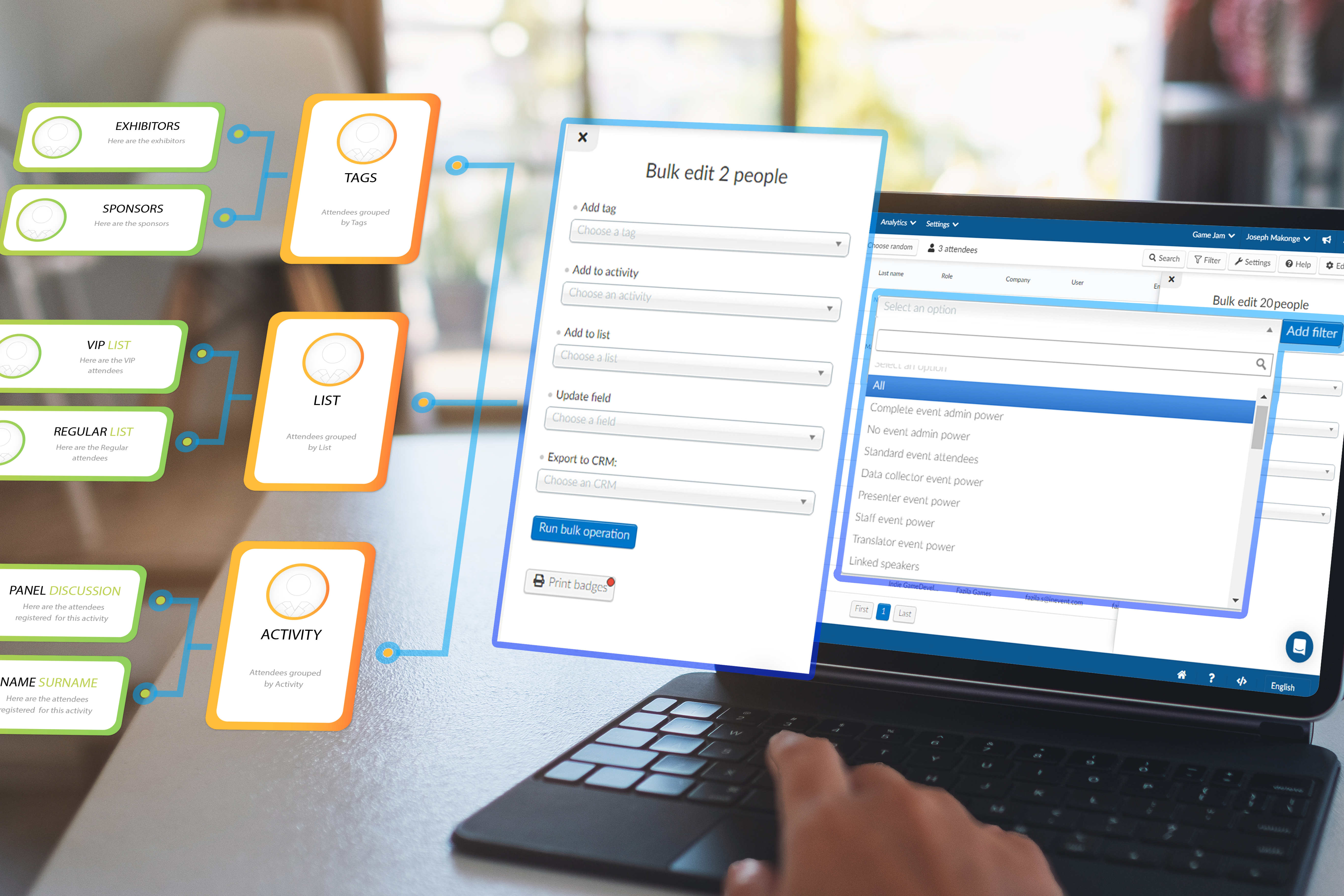InEvent supports full white-labeling: emails, domains, mobile app names, and even post-event dashboards can reflect your client’s brand. You can clone successful event templates, manage user roles, and present insights in client-ready formats—all under one umbrella account.